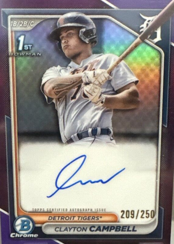 2024 Bowman Chrome CLAYTON CAMPBELL Purple Refractor AUTO #'d /250 #CPA-CCA