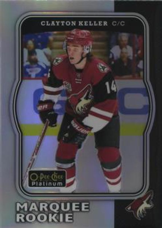 The Clayton Keller 2017 O-Pee-Chee Platinum #R-69 Retro Rainbow Rookie card is 1 of 34 Clayton Keller's card variations in the 2017 O-Pee-Chee Platinum set being tracked by Sports Card Investor, including Base, Rainbow, Violet Pixels, Red Prism /199, and Royal Blue Cubes /99.