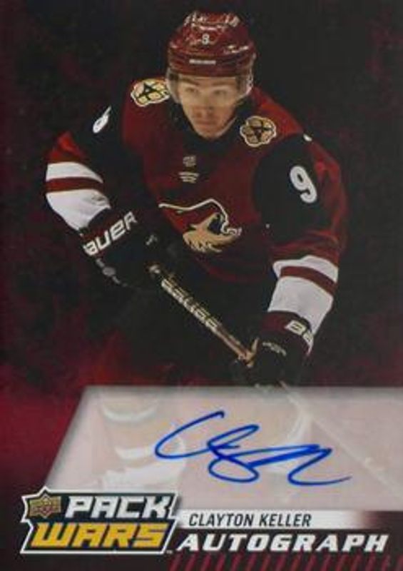 The Clayton Keller 2018 Upper Deck MVP #A-CK Pack Wars Player Achievements Autographs /5 card is 1 of 18 Clayton Keller's card variations in the 2018 Upper Deck MVP set being tracked by Sports Card Investor, including Base, Factory Set Blue, Green Script, Puzzle Back, and Silver Script.