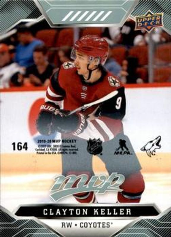 The Clayton Keller 2019 Upper Deck MVP #164 Puzzle Backs card is 1 of 13 Clayton Keller's card variations in the 2019 Upper Deck MVP set being tracked by Sports Card Investor, including Base, Blue, Gold Script, Silver Script, and Super Script /25.