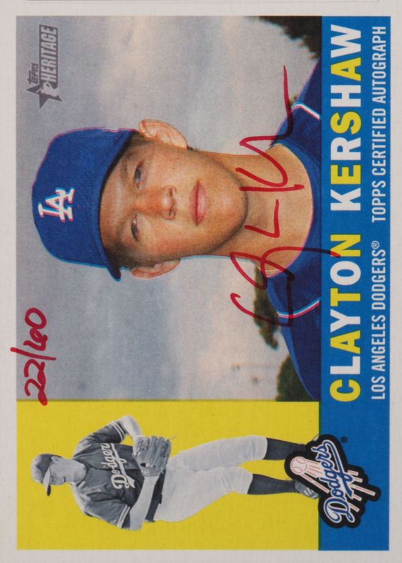 The Clayton Kershaw 2009 Topps Heritage #ROA-CK Real One Autographs - Red Ink /60 card in Raw condition has not changed in price in the last 30 days and was last sold for $912.55 .