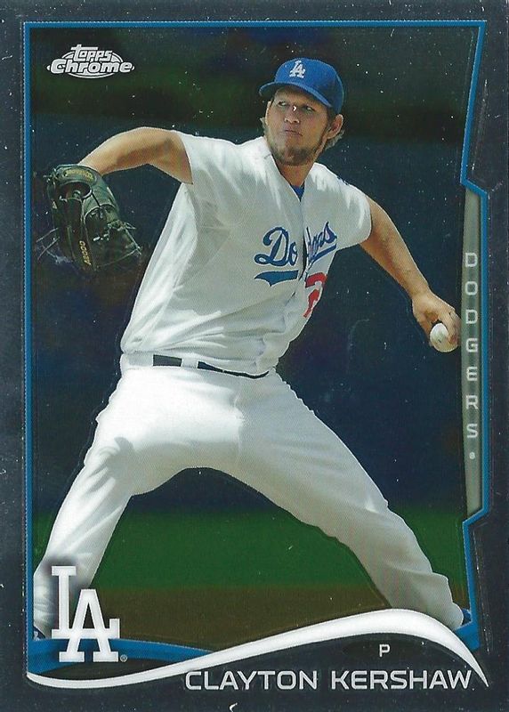 The Clayton Kershaw 2014 Topps Chrome #100 Base card in Raw condition has moved down -$1.00 (-44.4%) in the last 30 days and was last sold for $1.25 .