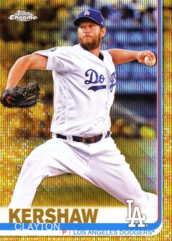 2019 Topps Chrome 112 Clayton Kershaw Los Angeles Dodgers 43/50 Gold Wave