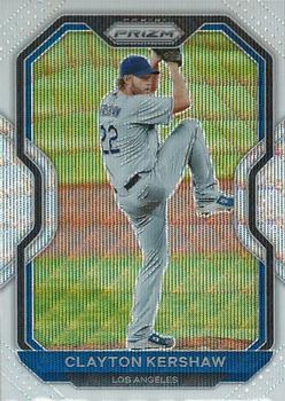 The Clayton Kershaw 2021 Prizm #204 White Wave card is 1 of 48 Clayton Kershaw's card variations in the 2021 Prizm set being tracked by Sports Card Investor, including Base, Blue, Blue Velocity, Carolina Blue, and Cosmic Haze.
