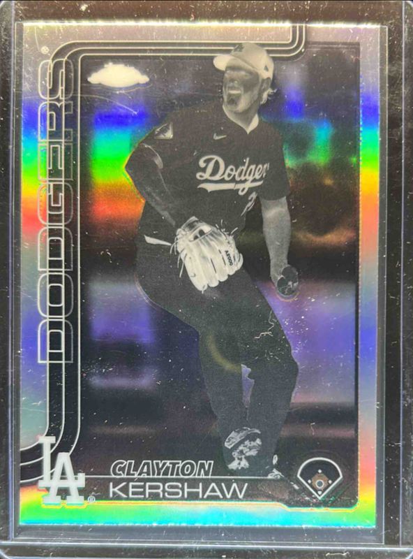 The Clayton Kershaw 2025 Topps Chrome #88 Negative Refractor card is 1 of 65 Clayton Kershaw's card variations in the 2025 Topps Chrome set being tracked by Sports Card Investor, including Base, Geometric Refractor, Image Variation, Lightboard Logo Variation, and Prism Refractor.