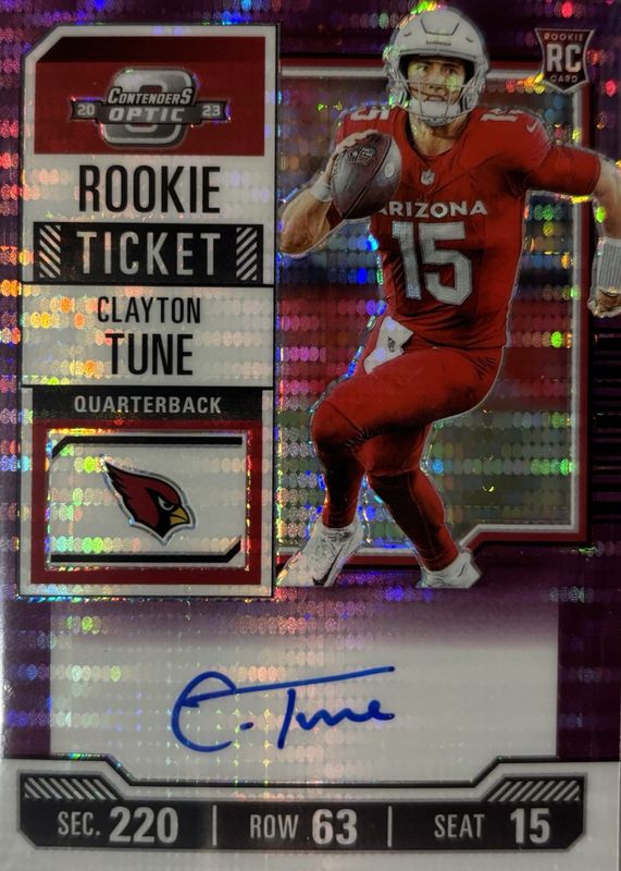 Clayton Tune 2023 Contenders Optic #106 Rookie Ticket Auto - Purple Pulsar /21 RAW Price Guide