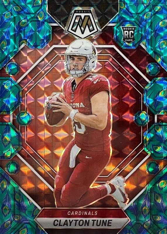 The Clayton Tune 2023 Mosaic #302 Choice Peacock /(SSP) Rookie card in Raw condition has not changed in price in the last 30 days and was last sold for $16.00 .