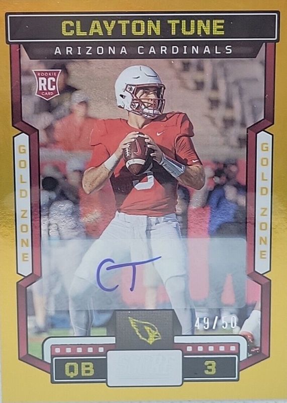 This card is 1 of 8 Clayton Tune's card variations in the 2023 Score set being tracked by Sports Card Investor, including Rookie Signatures, Rookie Signatures - Green, Rookie Signatures - Artist's Proof /35, Rookie Signatures - Red Zone /20, and Rookie Signatures - First Down /10.