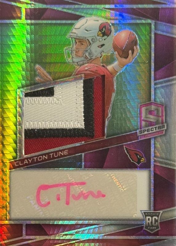The Clayton Tune 2023 Spectra #206 Rookie Patch Auto - Neon Pink /25 card in Raw condition has not changed in price in the last 30 days and was last sold for $4.26 .