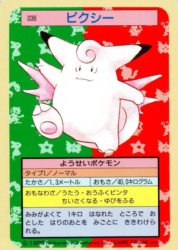 Clefable 1997 Japanese Topsun #036 Blue Back (1st Edition) RAW TCG (LIGHTLY PLAYED) Price Guide