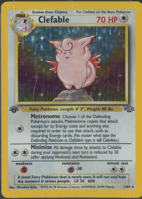 CLEFABLE Pokemon Card - WOTC - 1st Edition - Jungle - 1/64 - HOLO - LP / NM (A)
