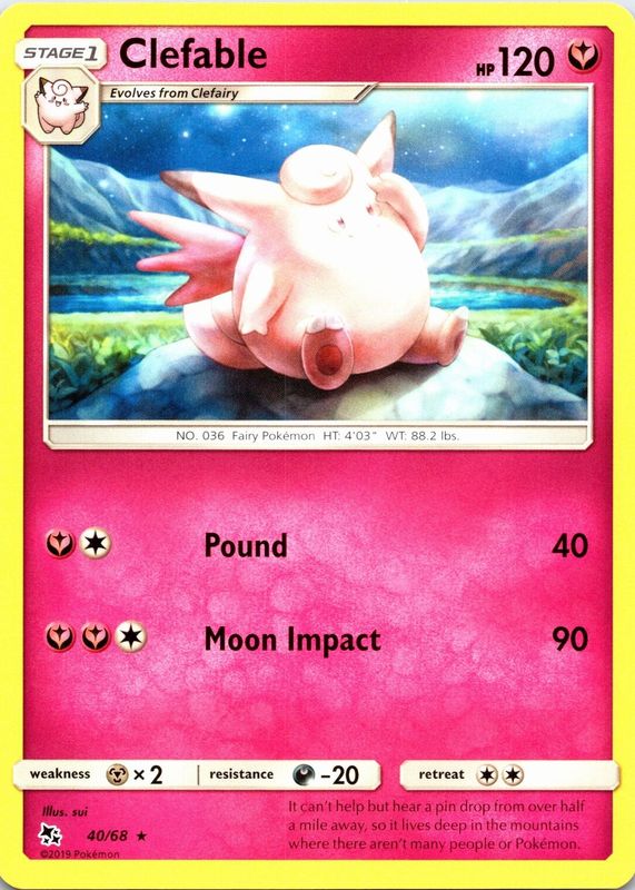 Clefable 2019 Sun & Moon: Hidden Fates #40/68 Base RAW TCG (LIGHTLY PLAYED) Price Guide