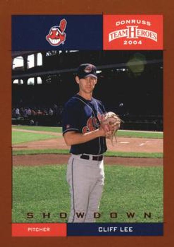 The Cliff Lee 2004 Donruss Team Heroes #125 Showdown - Bronze /150 card is 1 of 4 Cliff Lee's card variations in the 2004 Donruss Team Heroes set being tracked by Sports Card Investor, including Base, Showdown - Silver /50, and Showdown - Gold /10.