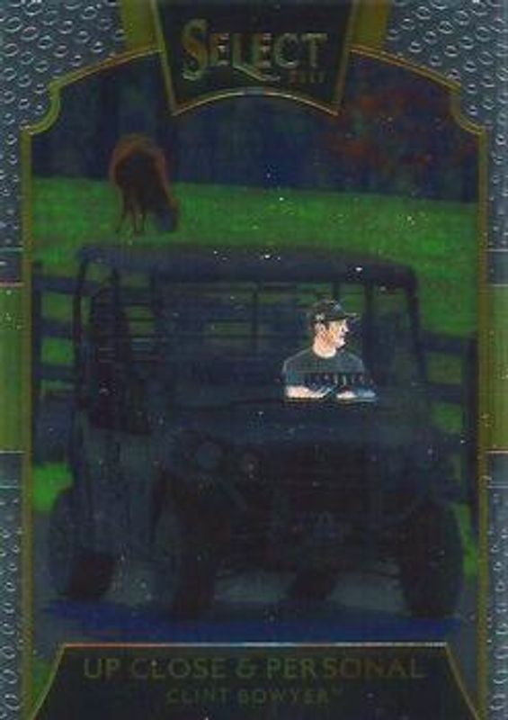 The Clint Bowyer 2017 Select NASCAR #UP9 Up Close & Personal card is 1 of 60 Clint Bowyer's card variations in the 2017 Select NASCAR set being tracked by Sports Card Investor, including #121 Base, #61 Base, #61 Purple Pulsar, #61 Silver, and #61 Red White & Blue Pulsar /299.