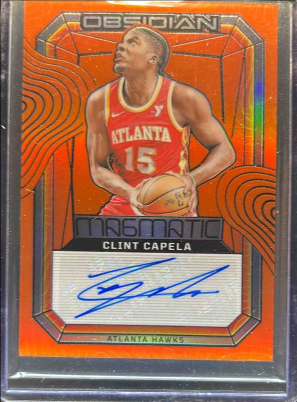 Clint Capela 2023 Obsidian #MS-CAP Magmatic Signatures - Electric Etch Orange Flood /75 RAW Price Guide