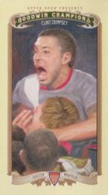 The Clint Dempsey 2012 Upper Deck Goodwin Champions #42 Mini card is 1 of 14 Clint Dempsey's card variations in the 2012 Upper Deck Goodwin Champions set being tracked by Sports Card Investor, including #42b Base, #42 Base, #42 Mini Foil, #42 Mini Green, and Mini Green Blank Backs.