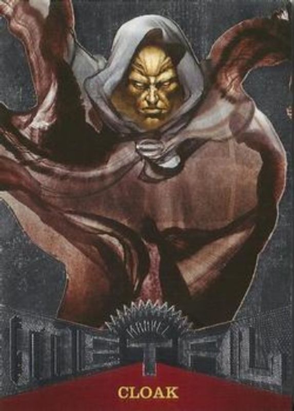 The Cloak 2017 Fleer Ultra Spider-Man #MM17 Marvel Metal card is 1 of 25 Cloak's card variations in the 2017 Fleer Ultra Spider-Man set being tracked by Sports Card Investor, including Base, Silver Web Foil, Gold Web Foil Autographs /49, Printing Plate Black /1, and Printing Plate Cyan /1.