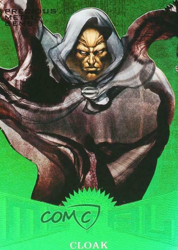 The Cloak 2017 Fleer Ultra Spider-Man #MM17 Precious Metal Gems Green /10 card in Raw condition has not changed in price in the last 30 days and was last sold for $690.00 .