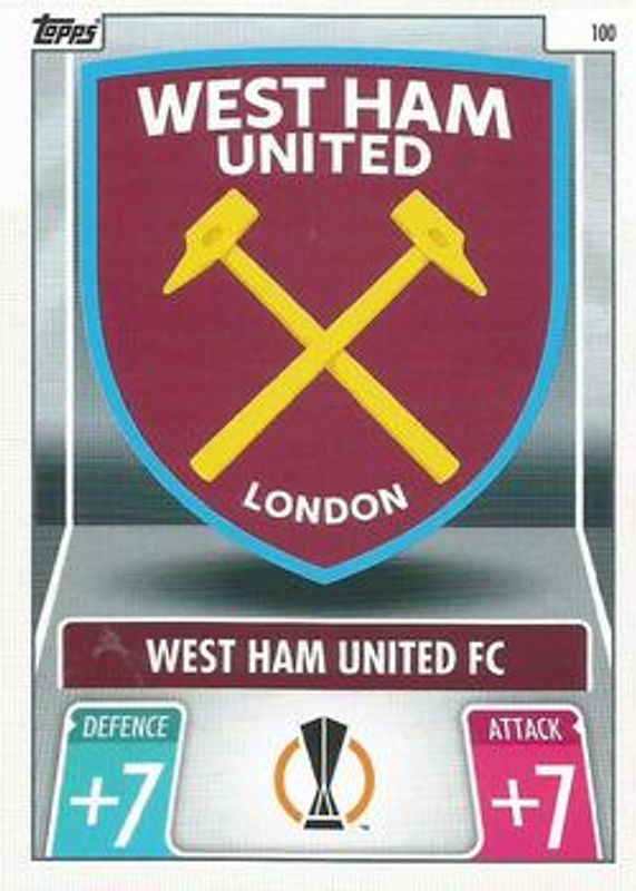 The Club Badge 2021 Topps Match Attax Champions & Europa League #100 Base card is 1 of 64 Club Badge's card variations in the 2021 Topps Match Attax Champions & Europa League set being tracked by Sports Card Investor, including #208 Base, #244 Base, #262 Base, #28 Base, and #280 Base.