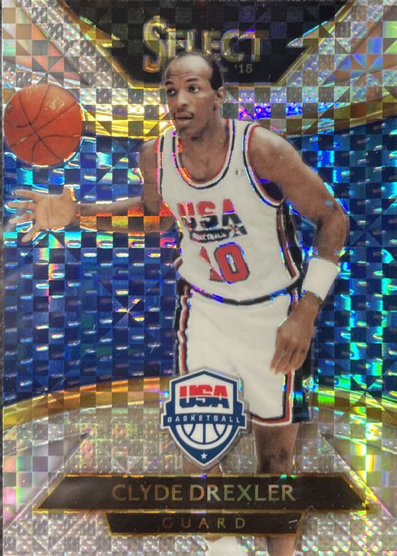 2014-15 Panini Select Basketball Clyde Drexler Silver Prizm Team USA #203 HOF