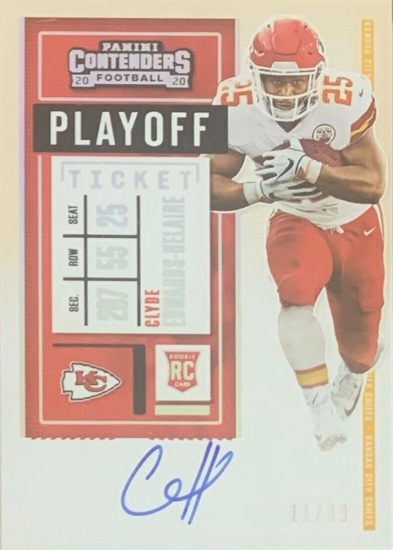 2020 Contenders Playoff Ticket Clyde Edwards-Helaire RC OnCard Auto 55/99 Chiefs