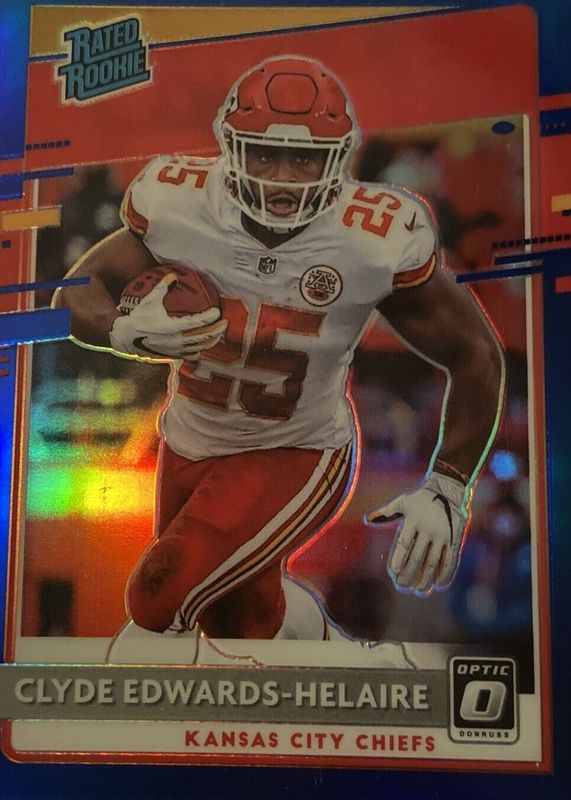 The Clyde Edwards-Helaire 2020 Donruss #P-321 Optic Preview - Blue /125 Rookie card in Raw condition has not changed in price in the last 30 days and was last sold for $10.00 .