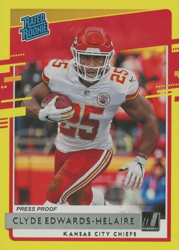 Clyde Edwards-Helaire Yellow Press Proof Rated Rookie RC 2020 Donruss 321 DT PP