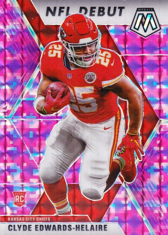 2020 Panini Mosaic Clyde Edwards-Helaire Pink Camo NFL DEBUT Insert Rookie RC