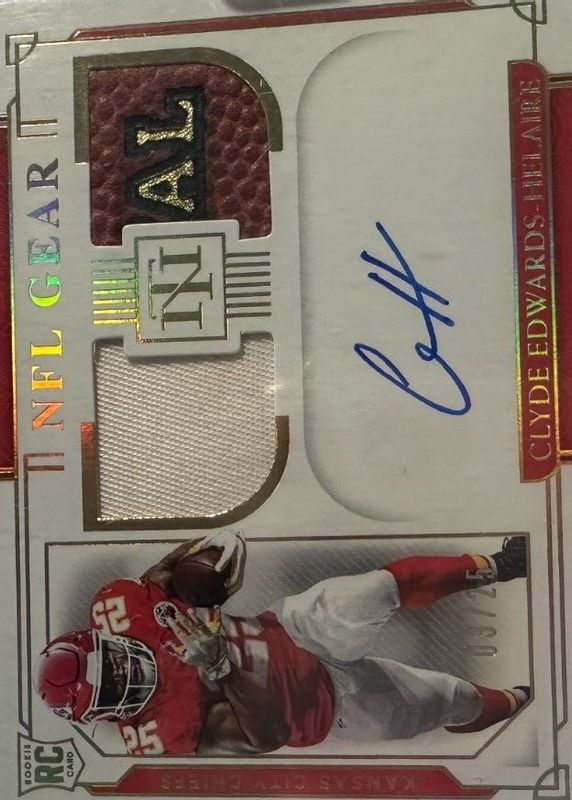 Auctions Ending Soon for Clyde Edwards-Helaire 2020 National Treasures #RSC-CH Rookie NFL Gear Signature Combos - Prime /25 RAW