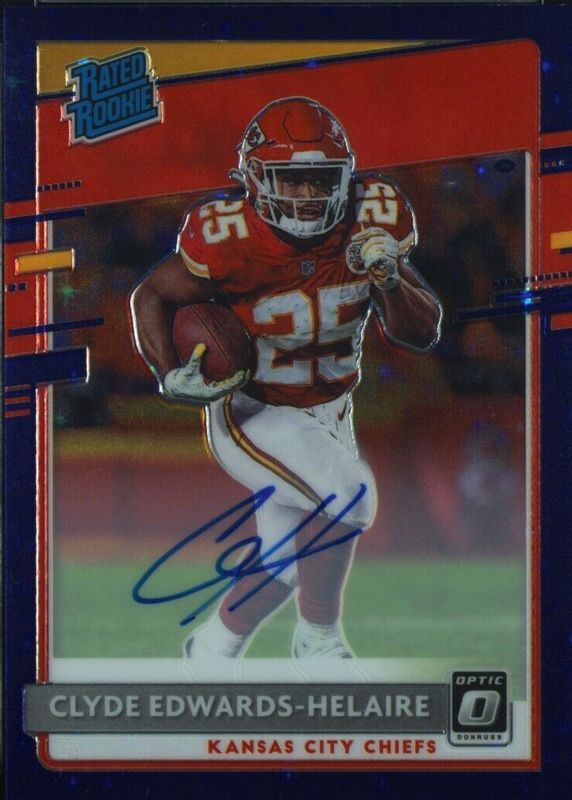 Auctions Ending Soon for Clyde Edwards-Helaire 2020 Optic #171 Rated Rookie Autographs - Purple Stars /50 RAW