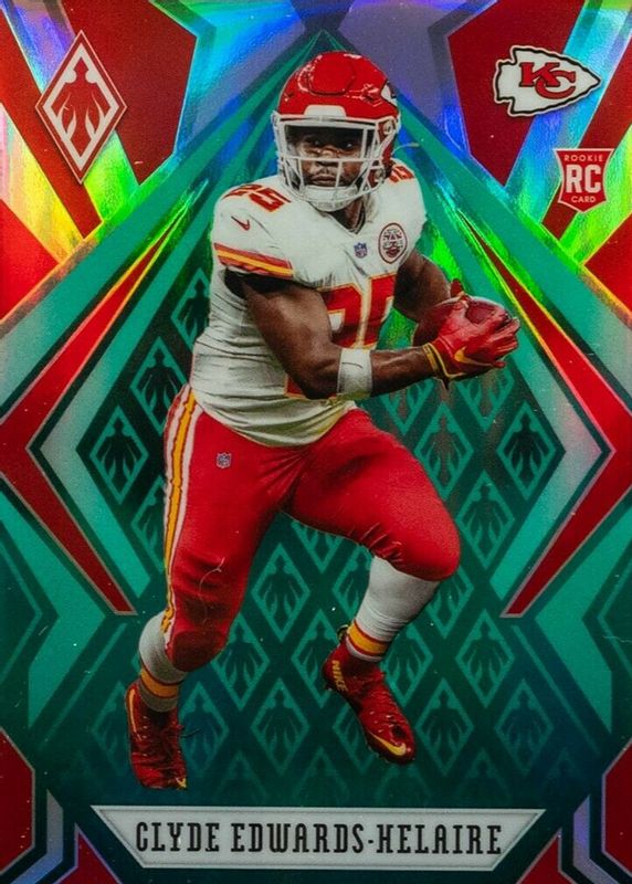 This card is 1 of 16 Clyde Edwards-Helaire's card variations in the 2020 Phoenix set being tracked by Sports Card Investor, including Base, Color Burst, Fire Burst, Silver, and Red /299.