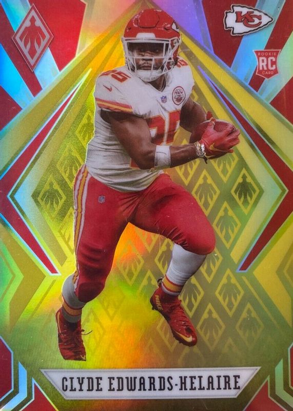 This card is 1 of 16 Clyde Edwards-Helaire's card variations in the 2020 Phoenix set being tracked by Sports Card Investor, including Base, Color Burst, Fire Burst, Silver, and Red /299.