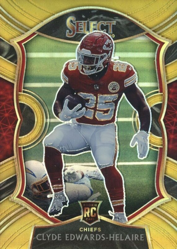 This card is 1 of 145 Clyde Edwards-Helaire's card variations in the 2020 Select set being tracked by Sports Card Investor, including Club Level, Concourse, Field Level, Premier Level, and Club Level Disco.