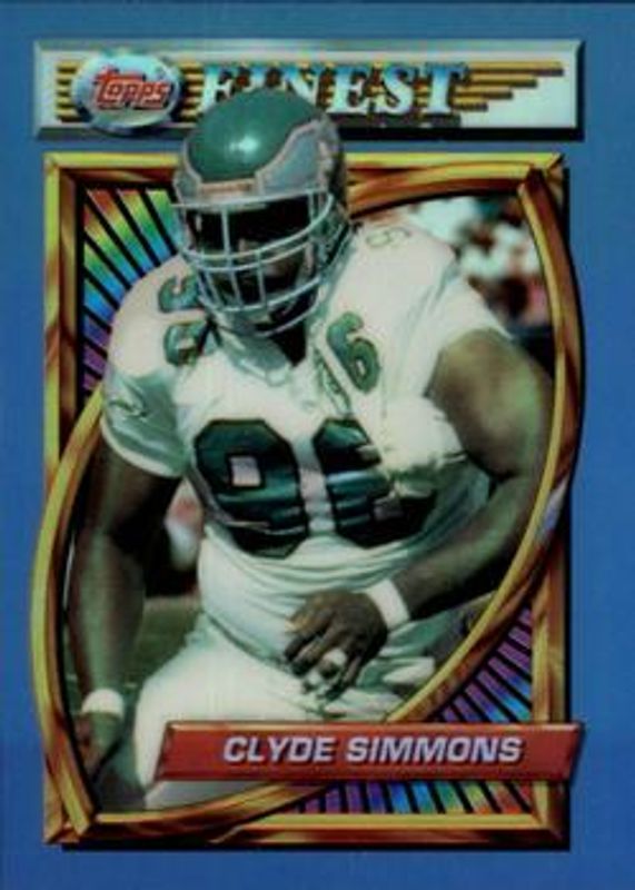 The Clyde Simmons 1994 Topps Finest #103 Base card is 1 of 2 Clyde Simmons' card variations in the 1994 Topps Finest set being tracked by Sports Card Investor, including Refractors.