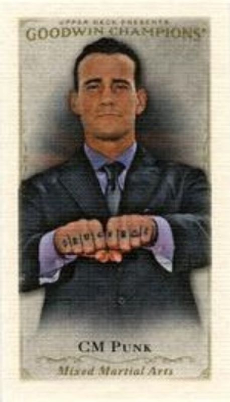 The CM Punk 2016 Upper Deck Goodwin Champions #13 Canvas Minis card is 1 of 55 CM Punk's card variations in the 2016 Upper Deck Goodwin Champions set being tracked by Sports Card Investor, including #114 Base, #63 Base, #13 Base, Canvas Blank Back Minis, and #63 Canvas Minis.