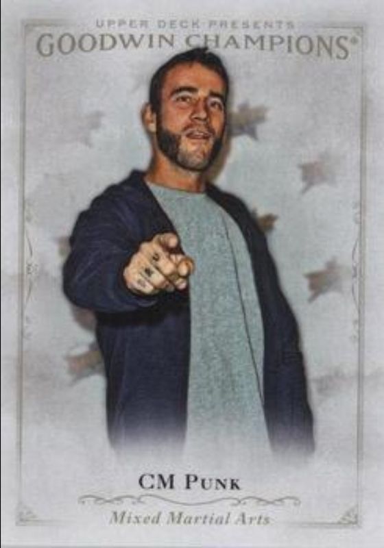 The CM Punk 2016 Upper Deck Goodwin Champions #SP-7 Short Prints (Photo Variations) card is 1 of 55 CM Punk's card variations in the 2016 Upper Deck Goodwin Champions set being tracked by Sports Card Investor, including #114 Base, #63 Base, #13 Base, Canvas Blank Back Minis, and #63 Canvas Minis.