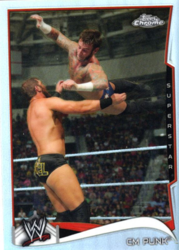 The CM Punk 2014 Topps Chrome WWE #12 Refractor card in Raw condition has moved down -$3.00 (-29.3%) in the last 30 days and was last sold for $7.25 .