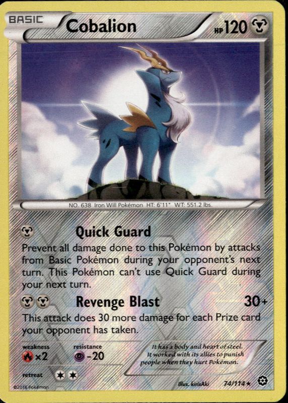Cobalion 74/114 Pokemon TCG Card XY Steam Siege Rare Reverse Holo Foil