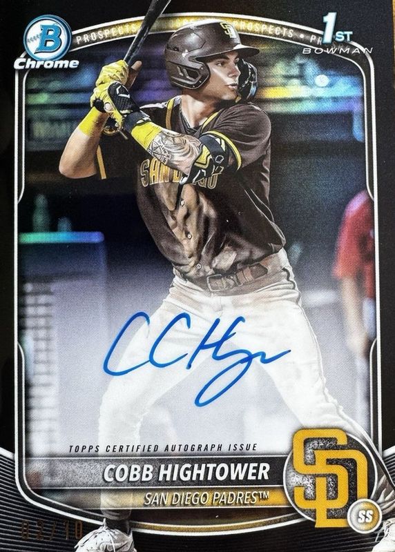 Cobb Hightower 2025 Bowman #CPA-CHI Chrome Prospect Auto - Black Refractor /10 (1st) RAW Price Guide