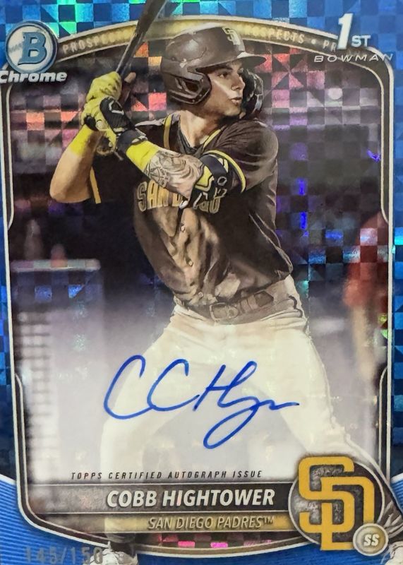 2025 Bowman Cobb Hightower 1st Bowman Chrome Blue X-fractor Auto /150 Padres