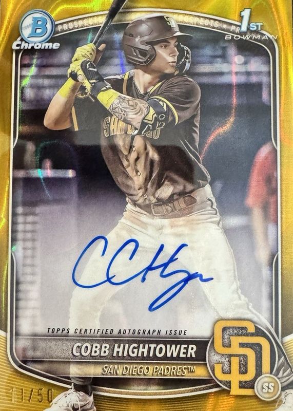 2025 Bowman Chrome 1st COBB HIGHTOWER Gold Lava Auto /50 San Diego Padres