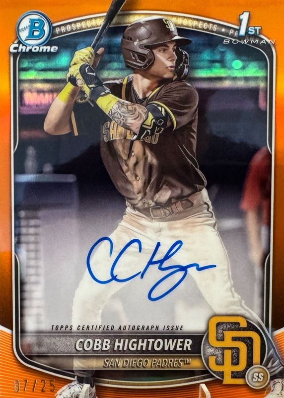 2025 Bowman Chrome Cobb Hightower #CPA-CHI True Orange 1st Auto /25 Padres