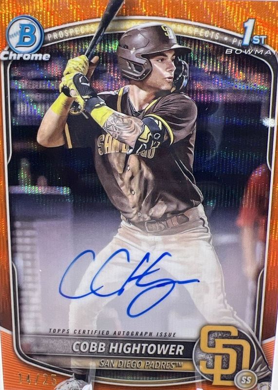 Cobb Hightower 2025 Bowman #CPA-CHI Chrome Prospect Auto - Orange Shimmer Refractor /25 (1st) RAW Price Guide