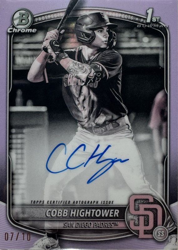 Recent Sales of Cobb Hightower 2025 Bowman #CPA-CHI Chrome Prospect Auto - Pearl Refractor /10 (1st) Raw
