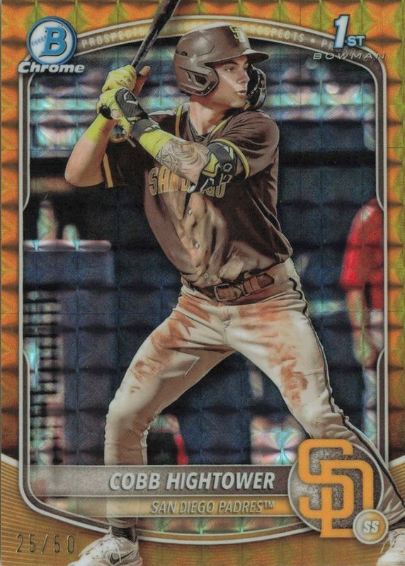 Recent Sales of Cobb Hightower 2025 Bowman #BCP-104 Chrome Prospects - Gold Geometric Refractor /50 (1st) Raw
