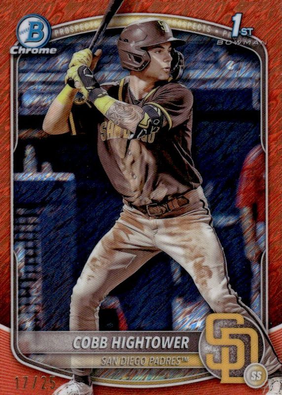 Cobb Hightower 2025 Bowman 1st Chrome Orange Shimmer /25 San Diego Padres