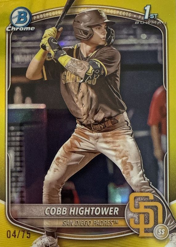 Cobb Hightower 2025 Bowman Chrome Prospects #BCP-104 Yellow Refractor /75 Padres