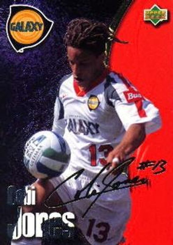 The Cobi Jones 1997 Upper Deck MLS #S1 Signatures card is 1 of 3 Cobi Jones' card variations in the 1997 Upper Deck MLS set being tracked by Sports Card Investor, including Base, and Gold.