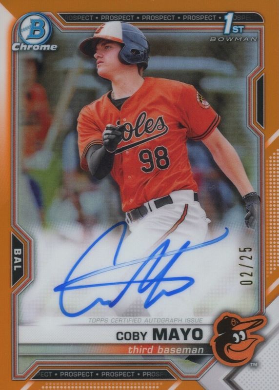 Best Prices Available For Sale of Coby Mayo 2021 Bowman #CPA-CMA Chrome Prospect Auto - Orange Refractor /25 (1st)