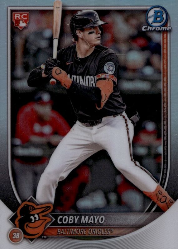The Coby Mayo 2025 Bowman #37 Red Rookie Logo Chrome card in Raw condition has moved up $0.99 (+24.8%) in the last 30 days and was last sold for $4.99 .